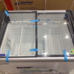 - Tủ đông trưng bày Hòa Phát cửa kính cong lùa 2 phái dễ dàng quan sát bên trong và lấy đồ